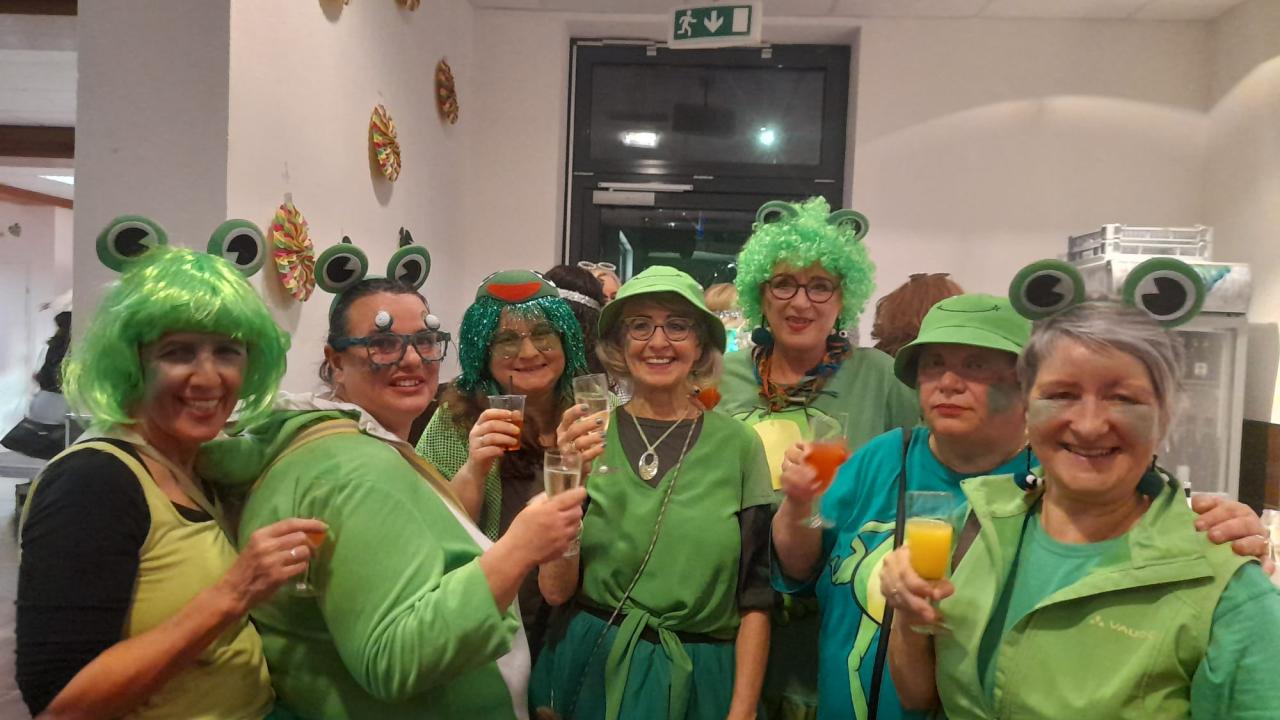 Am Unsinnigen Donnerstag ging es für die muntere Truppe weiter durch das Dorf. Es war uns eine Freude, für ein wenig Farbe und Heiterkeit im Dorfgeschehen und im Rathauskeller zu sorgen. Und eines ist gewiss: in bisschen „Frosch-Power“ tut jedem gut!